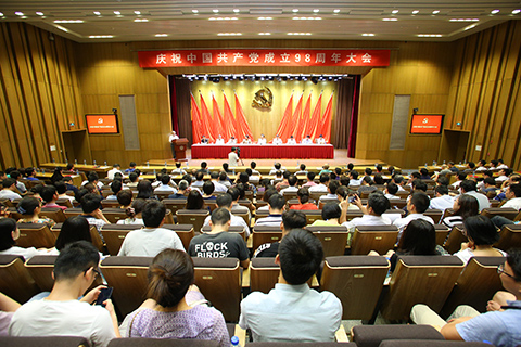 6月28日,我校隆重召开庆祝中国共产党成立98周年大会,号召、动员全校各级党组织和广大党员不忘初心、牢记使命,激发昂扬斗志,积极推进“落地行动”,为办好中国特色社会主义大学统一思想、凝心聚力。