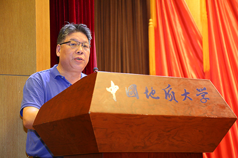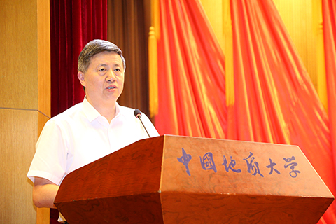 优秀共产党员代表、土地科学技术学院白中科教授,优秀党务工作者代表、外国语学院余茹,先进党组织代表、地球科学与资源学院党委副书记、院长王根厚在会上发言,交流分享了心得体会、工作经验和主要成果,表示将不忘初心、牢记使命,充分发挥党员先锋模范作用,在建设地球科学领域世界一流大学进程中努力贡献力量。