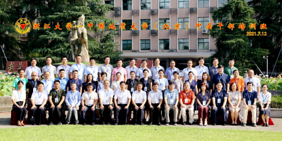 为深入学习贯彻习近平总书记在党史学习教育动员大会上的讲话精神,坚定理想信念,提高新任干部履职能力,2021年7月11日至17日,中国地质大学(北京)2021年中层干部培训班在全国教育培训基地浙江大学华家池校区举行,来自16个教学单位行政领导班子成员和机关职能部门新提任的中层干部43人参加培训。