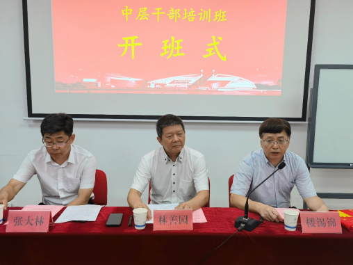 校党委副书记林善园出席开班仪式并作动员讲话。林善园强调,举办此次培训班是学校党委经过慎重考虑后作出的决定,是贯彻学校“干部能力提升计划”的重要举措。今年上半年学校顺利完成了教学单位的行政领导班子换届,一大批政治素质过硬、工作业绩突出的优秀年轻干部走上领导岗位,这次培训对提高新上任干部党性修养、理解和认识中国共产党历史、把握新发展阶段、贯彻新发展理念、构建新发展格局、推动高质量发展的能力,为推动学校高质量发展内涵式建设赋能蓄力具有十分重大的意义。林善园就“为什么当干部、当什么样的干部、怎么当干部”三个问题与培训班学员作了交流分享。党委常委、党委组织部部长张大林宣读了培训期间的有关纪律规定,明确要求参训学员必须严格遵守学习培训和廉洁自律的规定,鼓励学员要放下事务专心学、放下架子虚心学、放下杂念安心学,一定要学有所成、学有所获。