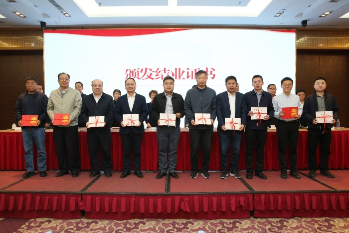 能源学院院长姚艳斌、土地科学技术学院党委书记孟兵丽、国有资产管理处处长王栋、期刊中心主任王银宏、地球物理与信息技术学院副院长李红谊作为学员代表依次发言,结合工作实际分享培训收获、畅谈发展思考。全体校领导为学员代表颁发结业证书。